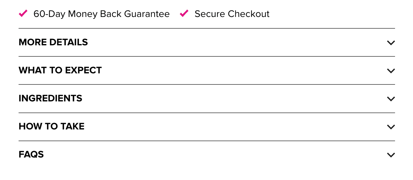 Content sections (ingredients, usage) are hidden in accordions, risking missed information.