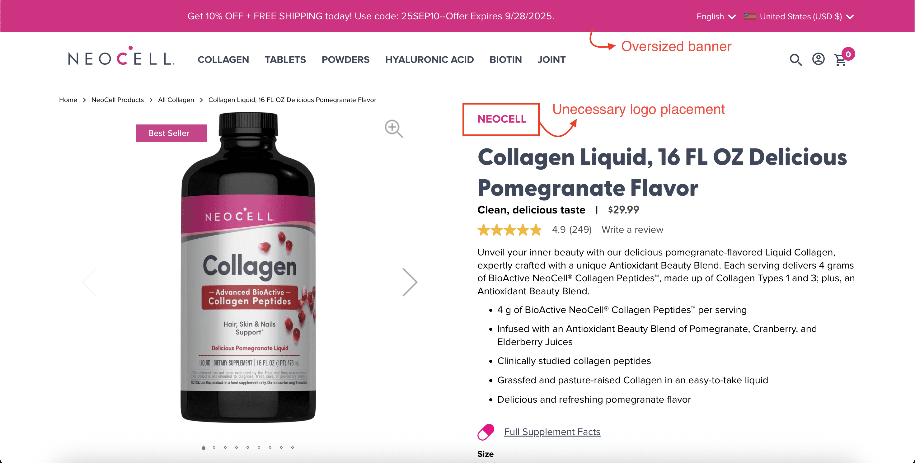 There are also miscellaneous items like the NeoCell logo and an oversized banner above-the-fold, which occupy a lot of unecessary screen space.